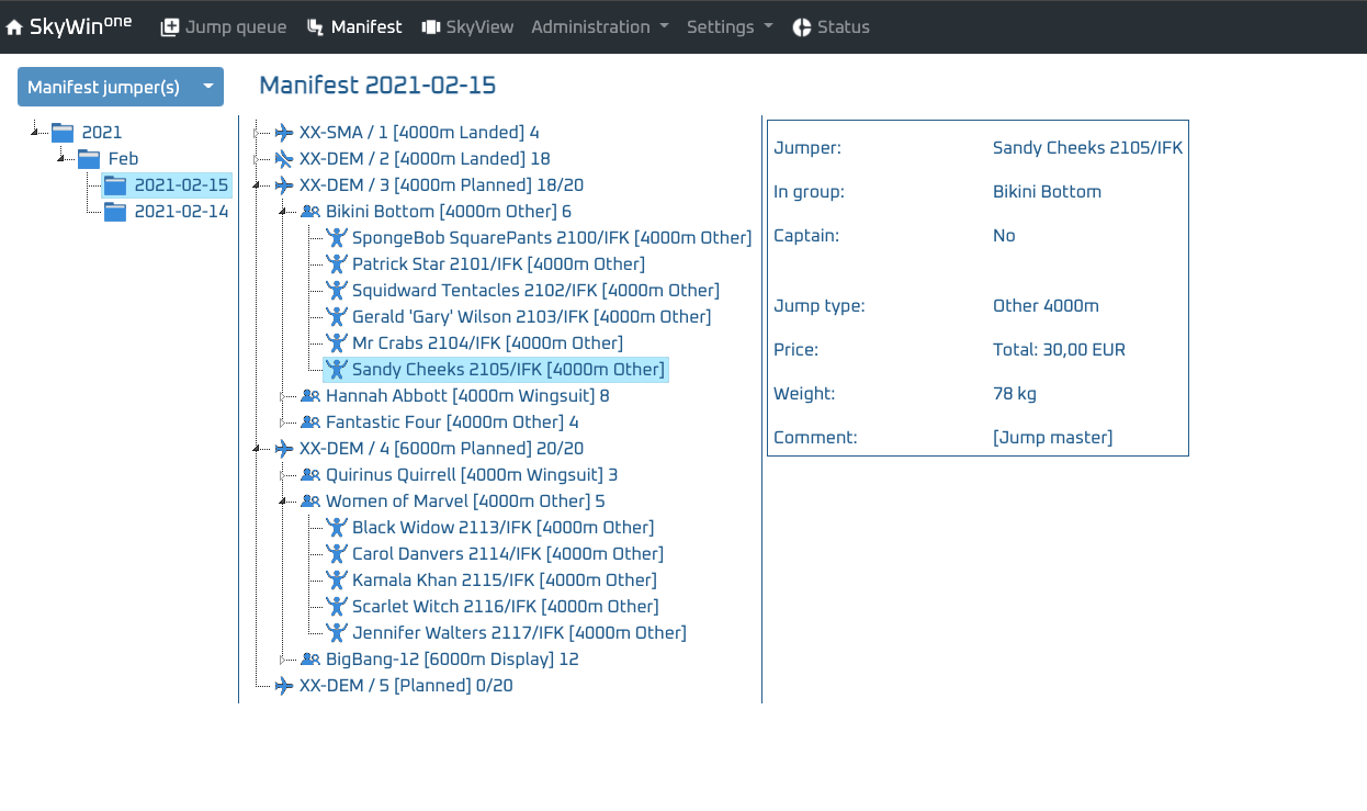 The ultimate system for administrating skydiving at clubs and drop zones. Easy for the manifest, administrators, jumpers, and pilots alike.