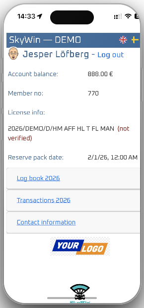 Each member gets their own page with current info, logbook (all time), transactions (all time), and contact details.